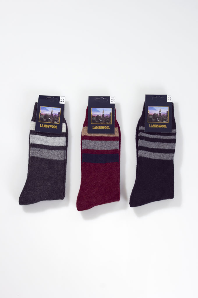 Peúga masculina em lambswool. Sortido de cores e desenhos.
