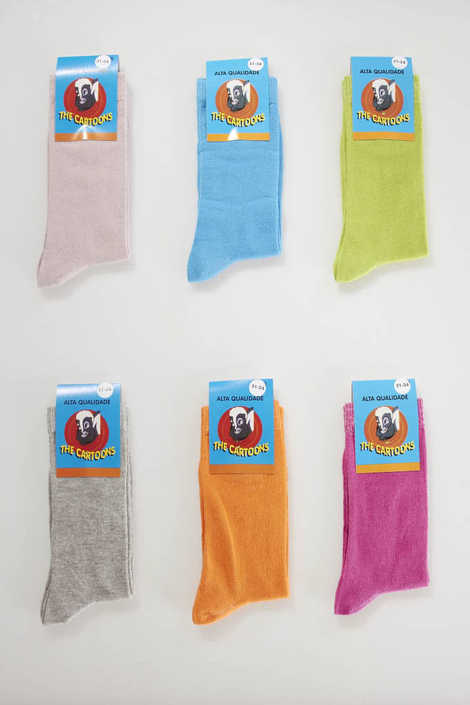 Peúga para criança lisa da Cartoons®. Disponível em dois sortidos de cores por dúzia.
