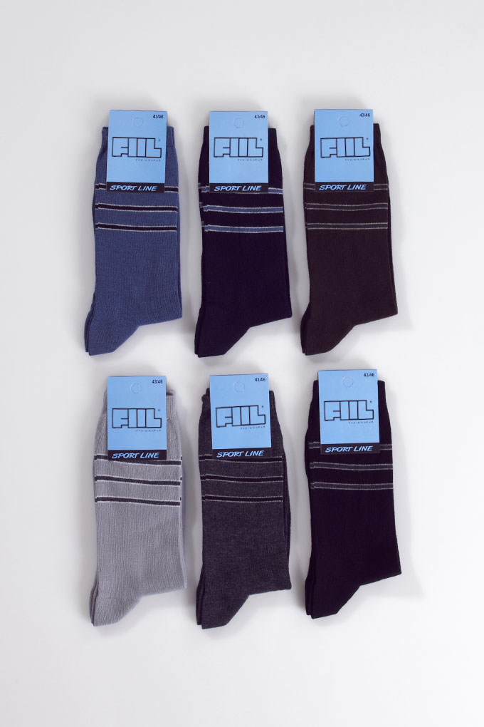 Peúga para homem em licra Fiil®. Disponível em sortido de duas cores e padrões. Tamanho único.
