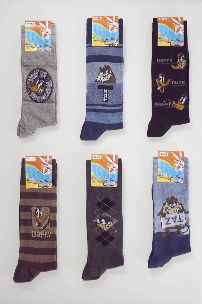 Peúga para adulto Looney Tunes®. Dúzias disponíveis em três tamanhos com desenhos sortidos.