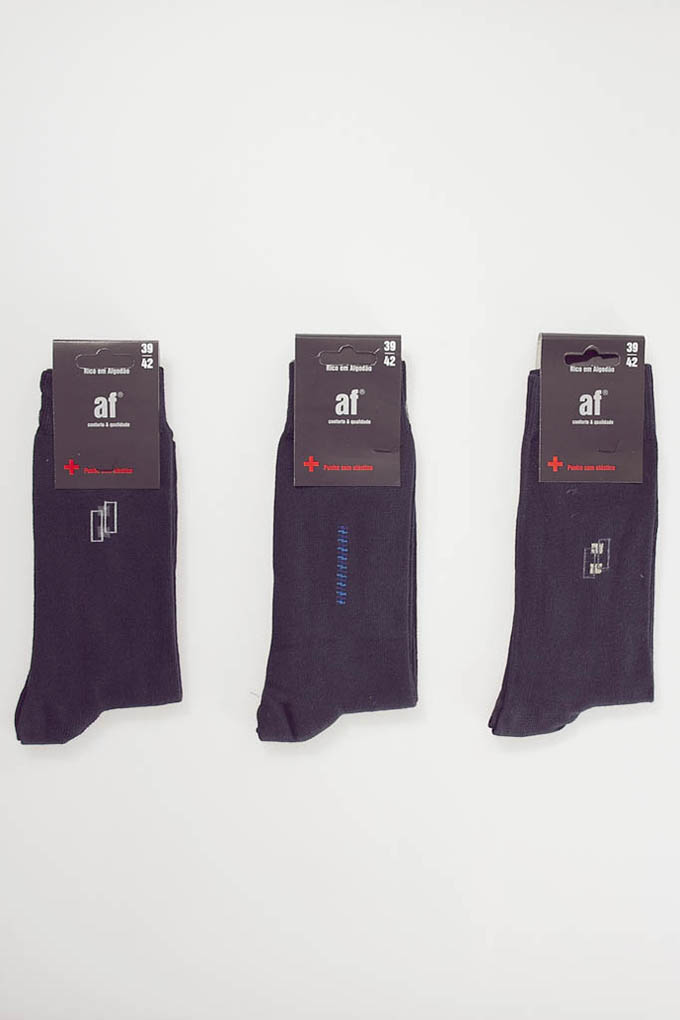 Peúga para homem medicinal com aplicação de bordado. Disponível em dois sortidos de cores por dúzia.