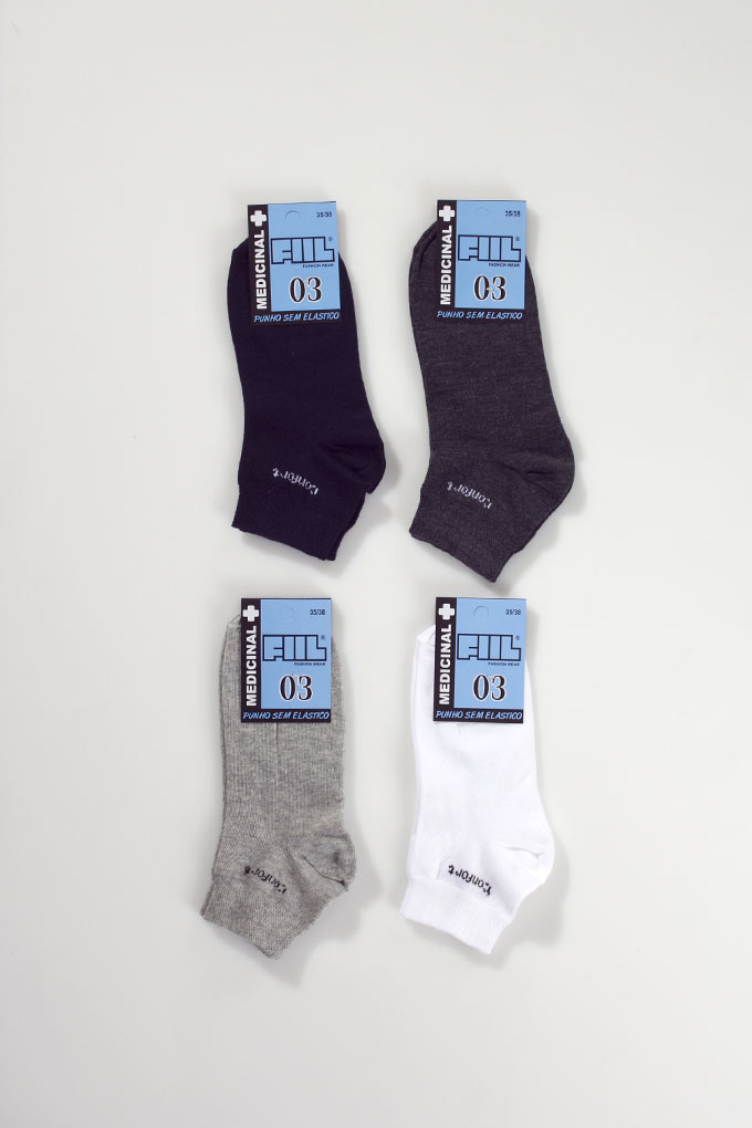 Soquete medicinal sem punho elástico. Disponível em sortido de quatro cores por dúzia.