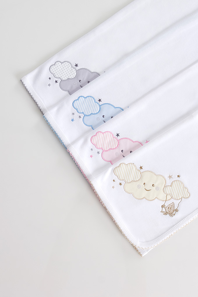 Fralda bordada para bebé. Sortido disponível em quatro cores.