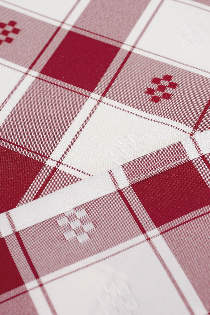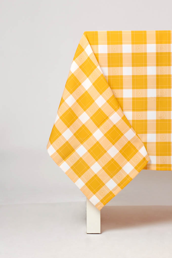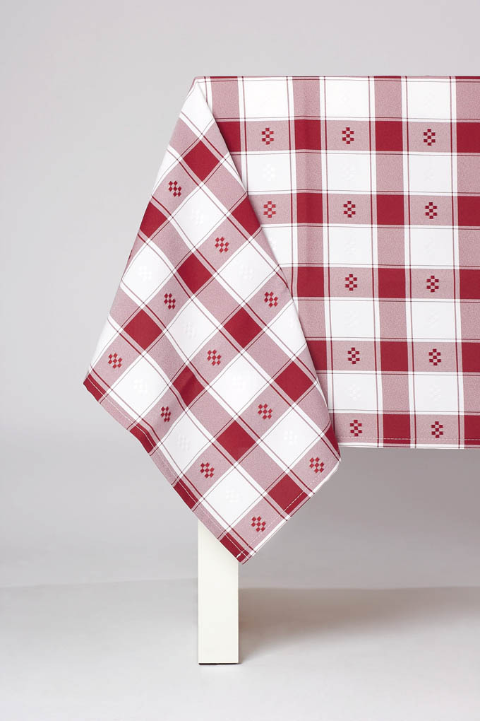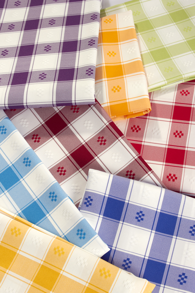 Toalhas de mesa em poliester. Facéis de passar a ferro, pois não enrugam. Fabrico de medidas especiais por especial encomenda. Disponíveis em vários padrões de xadrez, além de cores lisas.